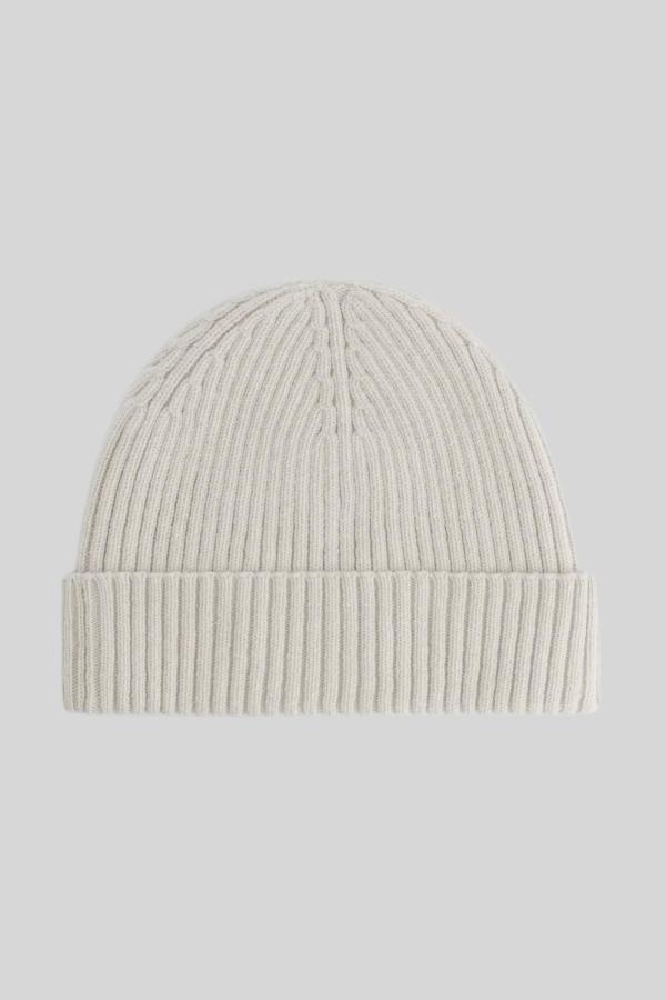 Muts Olaf ‘Wool Beanie Cement’: beige muts met omslag, gemaakt van wol, polyamide en acryl. Voorzien van een grof ribbreisel en een klein geweven logo label. Zacht, comfortabel en ideaal om je warm te houden tijdens koude dagen. Een stijlvolle winterbasic!
