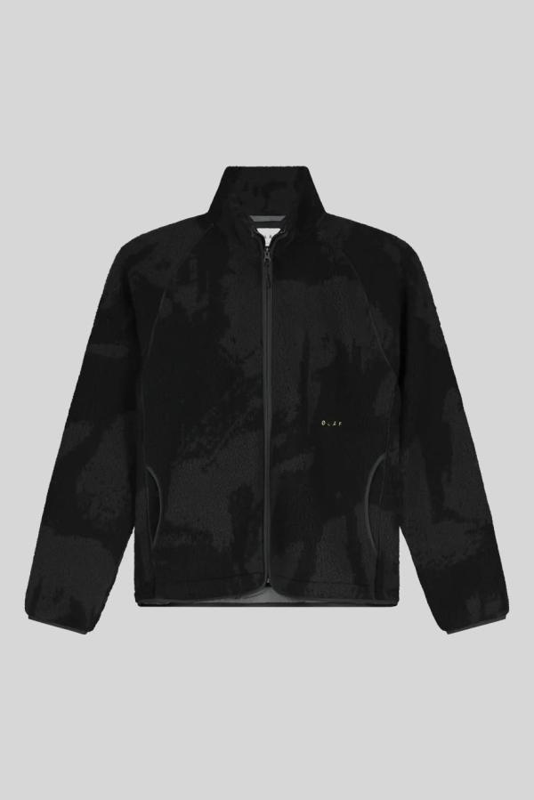Vest Olaf ‘Fleece Jacket Black Charcoal’: zwart-grijs teddy vest met fleecevoering, ritssluiting, steekzakken en een ritszak op de linkermouw voor bijv. een skipas. Subtiel geborduurd ØLÅF-logo op de borst. Comfortabel en stijlvol, ideaal voor dagelijks gebruik in koudere dagen!