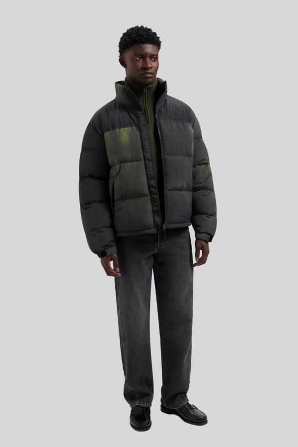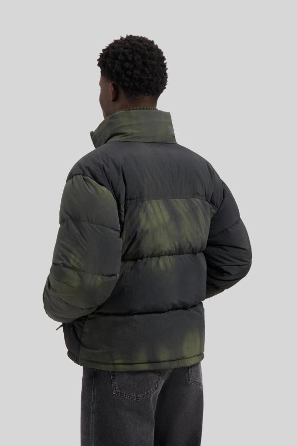 Jack Olaf ‘2-Tone Puffer Jacket Olive Night’: donkergroen puffer jack van stevige nylon met grijze print, gevoerd met dons. Voorzien van verborgen capuchon in de kraag, ritssluiting en zakken met blinde rits. Een warme, stijlvolle essential met een strakke look en functioneel design!