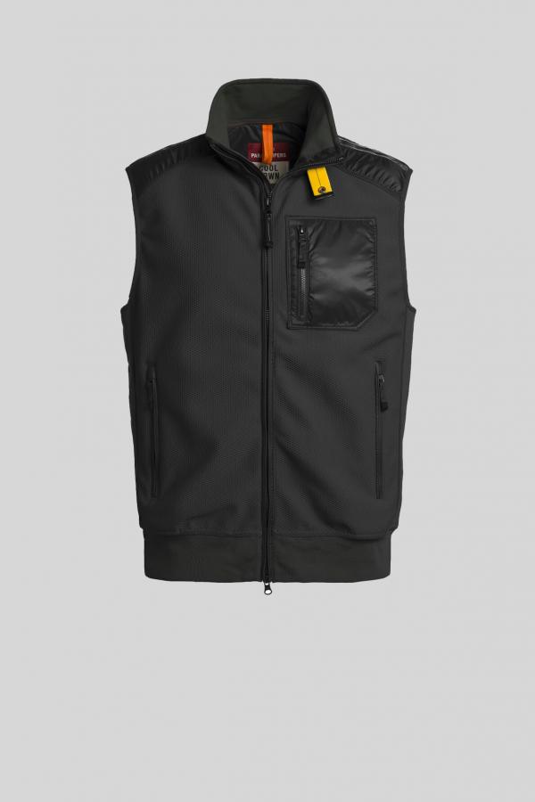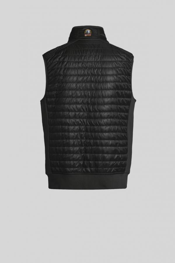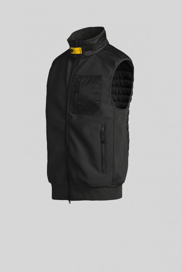 Bodywarmer Parajumpers in model ‘Ludo’ met opstaande kraag in de kleur ‘Black’. De lichte bodywarmer is gestikt op de achterkant. De voorkant is gemaakt van een technische stof met wafelpatroon. Het logo PJS zit op de achterkant van de kraag.