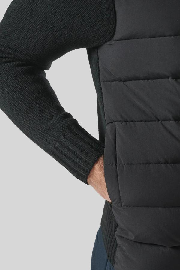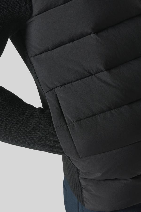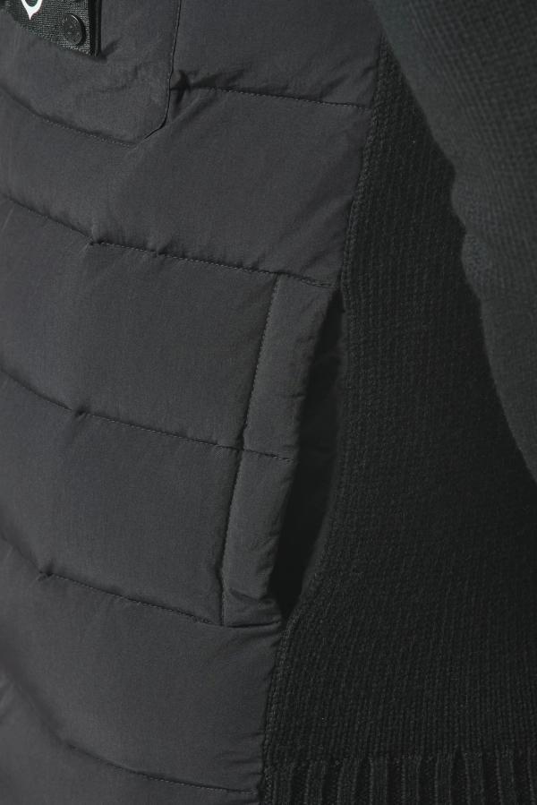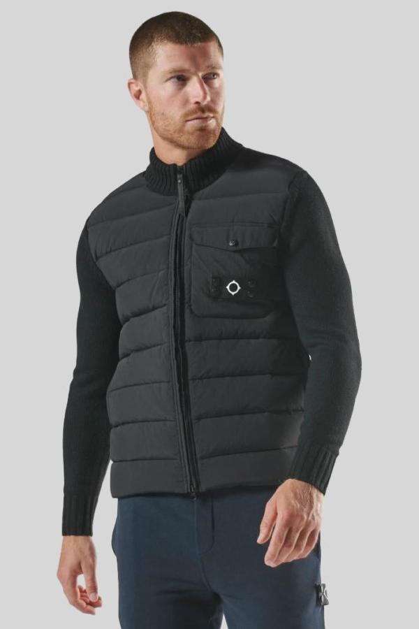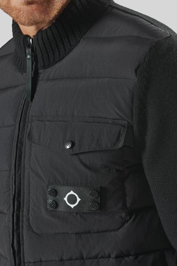 De Ma.Strum ‘Storm Knit Jacket’ in zwart combineert stijl en functionaliteit. Het jasje heeft een gebreide rug en mouwen, een nylon voorpaneel gevoerd met dons, een borstzak met patch en twee steekzakken. Perfect voor warmte, comfort en een moderne look!