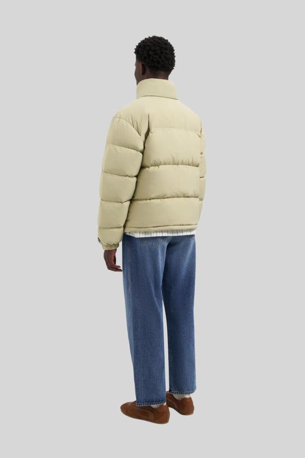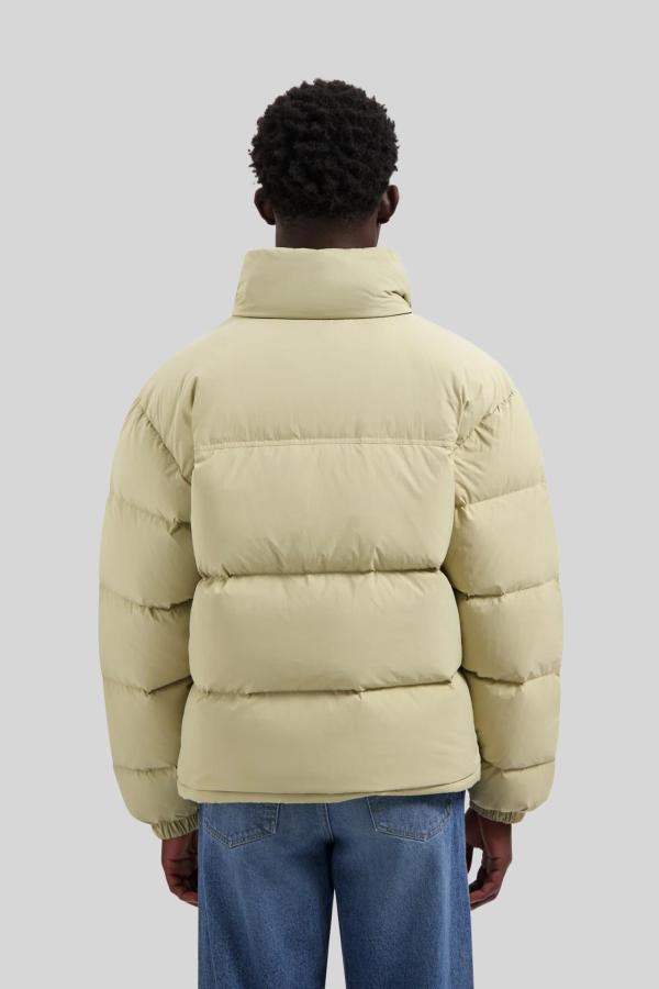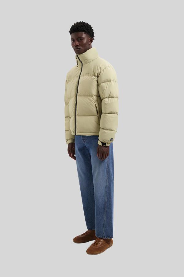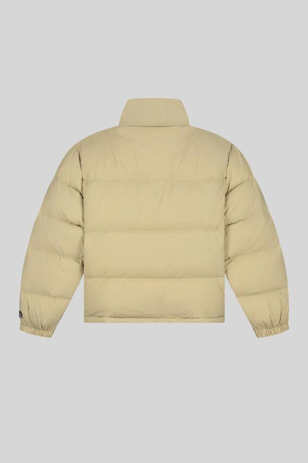 Jack Olaf ‘Matte Puffer Jacket Hemp’: beige puffer jack van nylon met donsvulling, ritssluiting en blinde ritszakken. De capuchon zit verborgen in de opstaande kraag. Subtiel maar krachtig in uitstraling, ontworpen voor dagelijks gebruik met de perfecte balans tussen comfort en stijl!