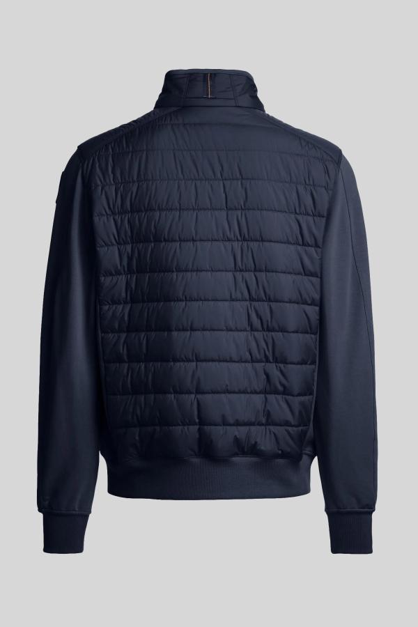 Vest Parajumpers model ‘ELLIOT Man Fleece/Nylon Jacket Blue Navy’ met opstaande kraag. Het korte, blauwe jack is een combinatie van 100% polyester (stof 1) en 95% katoen en 5% Elastan (stof 2). Het gewatteerde voor- en achterpand biedt warmte en comfort, terwijl het PJS-logo op de mouw zorgt voor een herkenbare, stijlvolle uitstraling.