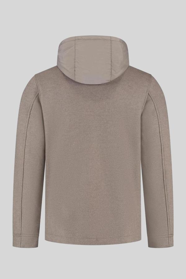 Woolrich ‘Knitted Wool Shirt Jacket’ in de kleur ‘Falcon’. Deze camelkleurige jas met hemdkraag heeft drukknopen, een binnenstuk met ritssluiting en capuchon. Gemaakt van een wol-, katoen- en polyestermix, met Primaloft-voering voor optimale warmte en een licht, comfortabel draaggevoel!