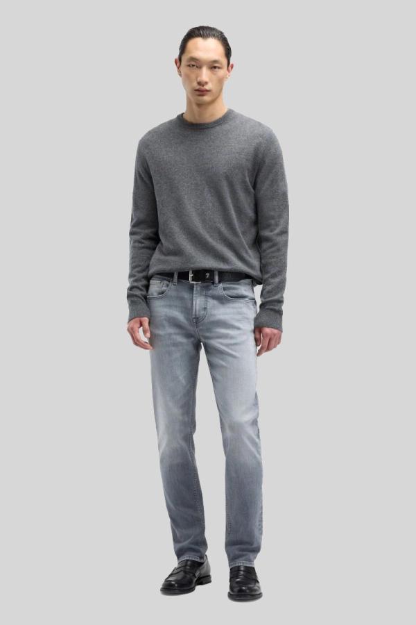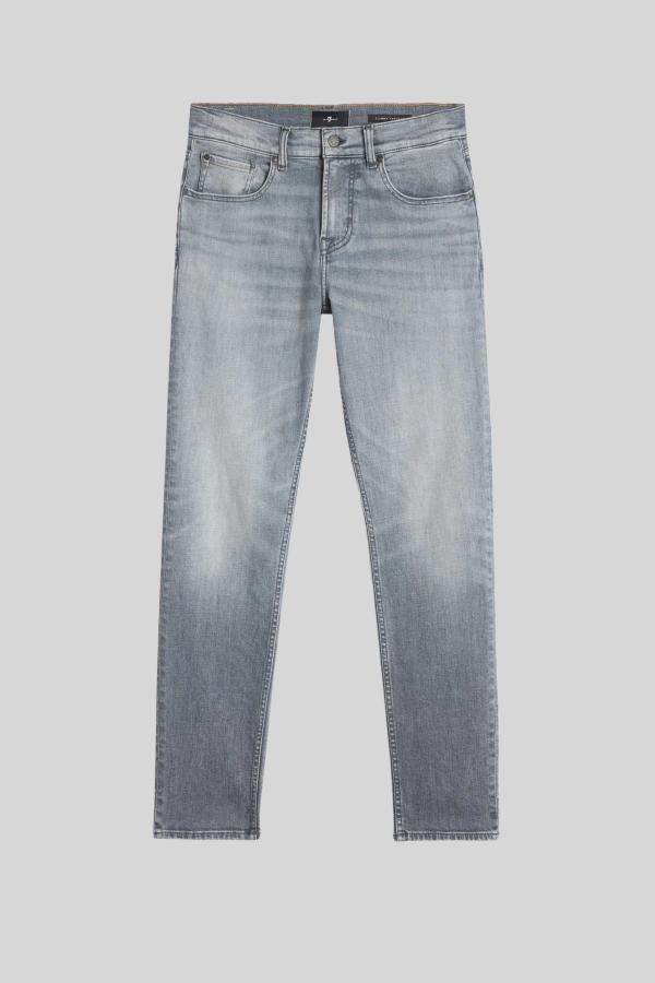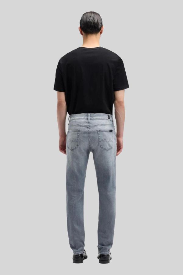De ‘7 For All Mankind Slimmy Tapered Urban’ jeans in een lichtgrijze kleur met lichte washing op de bovenbenen biedt een perfecte mix van stijl en comfort. Met een middelhoge taille en slank toelopende pijpen heeft deze spijkerbroek een moderne pasvorm. Gemaakt van luxe stretchdenim voor optimale bewegingsvrijheid.