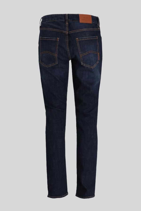Armani Exchange Jeans J14 Slim Fit Blue Denim – Donkerblauwe, gewassen spijkerbroek met een slanke pasvorm. Gemaakt van zacht katoen met een vleugje elastan voor extra comfort en bewegingsvrijheid. Een moderne, veelzijdige denim voor elke dag!