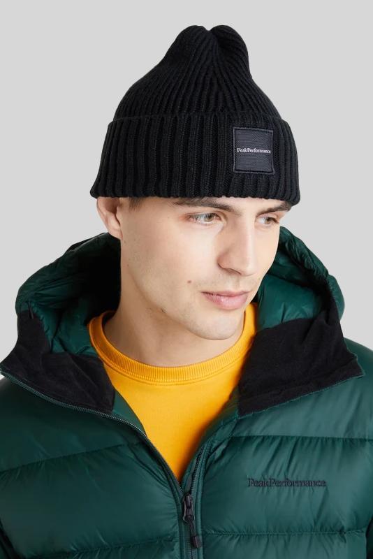 Muts PeakPerformance zwart in model ‘Cornice Hat’. De muts met omslag en logo is gemaakt van acryl. De maatvoering is ‘one size fits all’.