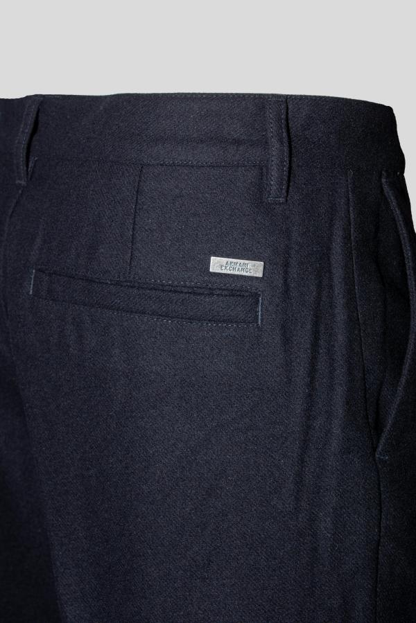 Armani Exchange pantalon in diep donkerblauw ‘Deep Navy’, gemaakt van een hoogwaardige mix van wol, polyester, polyamide, acryl en viscose. Voorzien van blinde ritssluiting, steek- en paspelzakken voor een stijlvolle, moderne look!
