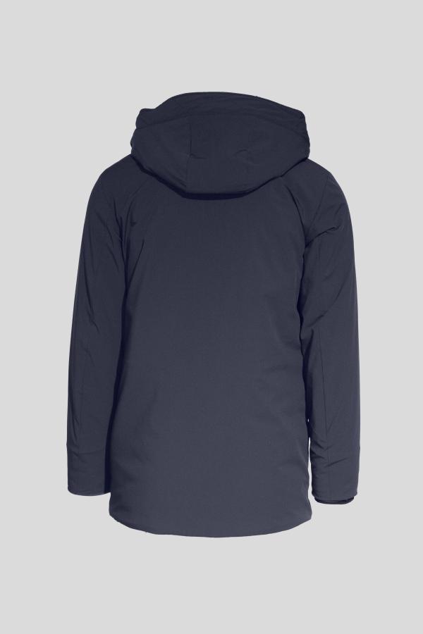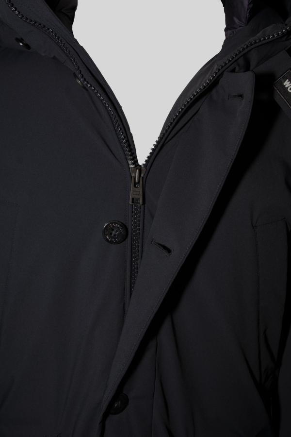 Jas Woolrich in model ‘Stretch Arctic Parka’ in de kleur ‘melton blue’. De blauwe parka heeft vaste capuchon, blinde ritssluiting en knoopsluiting en is gevoerd met Primaloft. De jas is licht en comfortabel door de zachte stof met elastan.