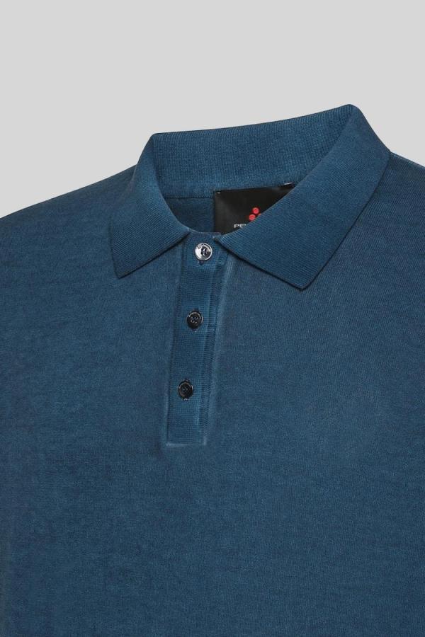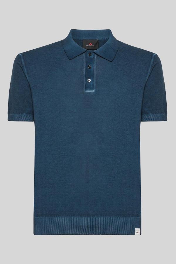 Polo Peuterey knitted, blauw gewassen in een regular fit model ‘Correboi’. De merknaam zit onderaan op de boord.