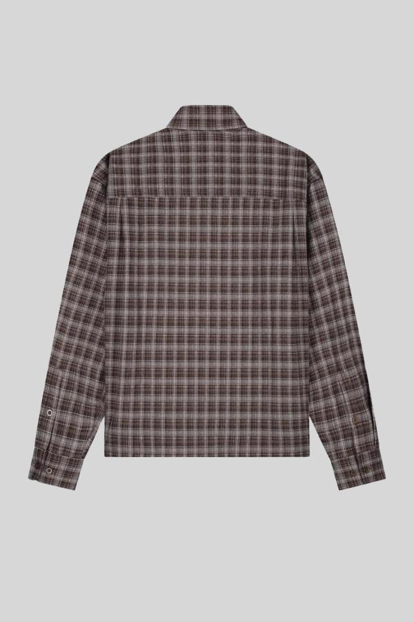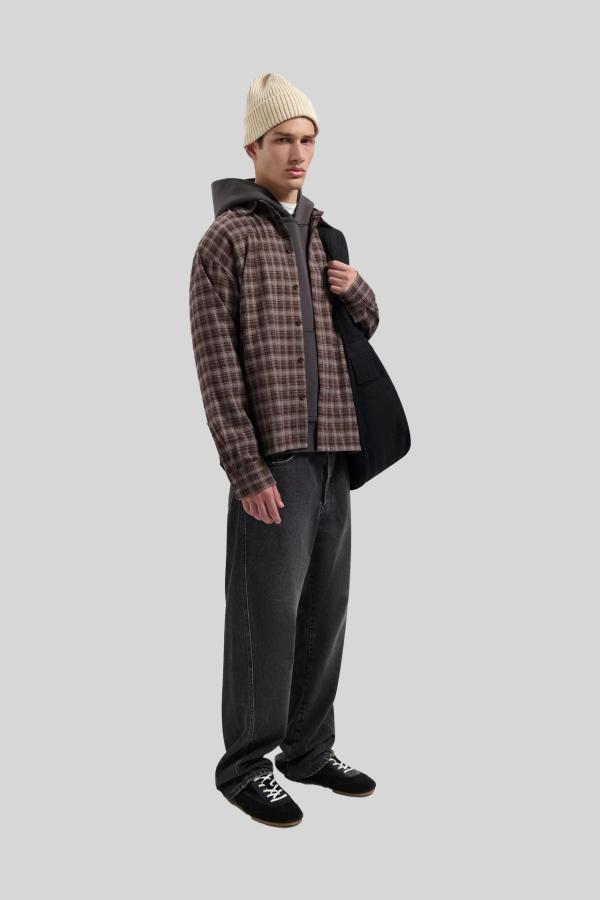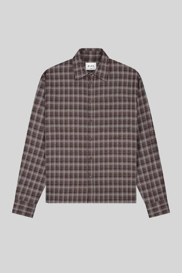 Overhemd Olaf ‘Plaid Boxy Shirt Hot Fudge’: boxy-fit overhemd in bruin/beige ruit van polyester, rayon en elastan met borstzak. Een stoer en veelzijdig stuk dat comfort en karakter combineert, perfect om laagjes te creëren of als krachtig kledingstuk afzonderlijk te dragen!