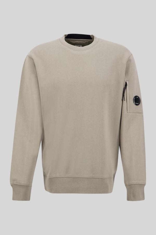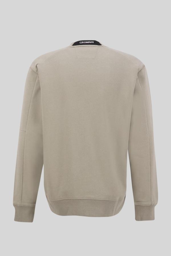 C.P. Company ‘Sweatshirt Crew Neck in Diagonal Raised Fleece in kleur Fallen rock (kaki), gemaakt van 100% katoen. Regular fit model, ronde hals met witte merknaam in de kraag en het iconisch goggle-lensdetail op de linkermouw met zakje en ritssluiting. Comfortabele en tijdloze stijl!