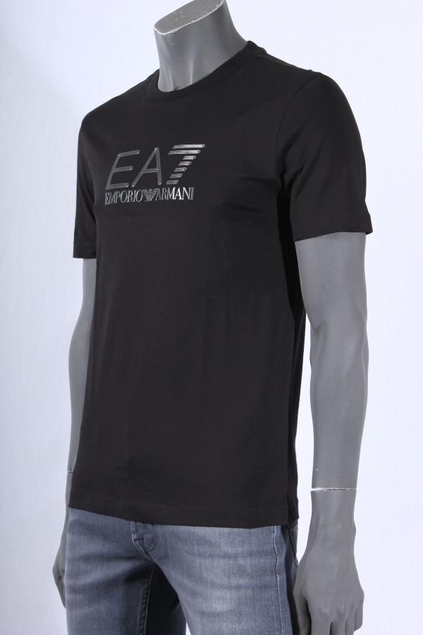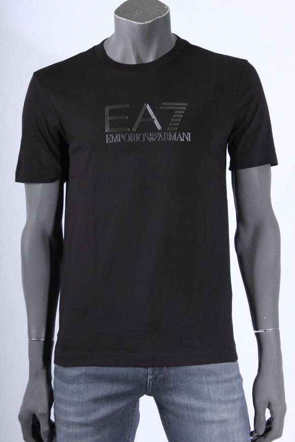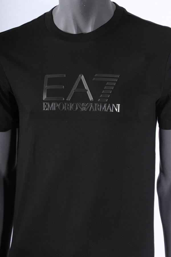 T-shirt EA7 in de kleur zwart met zwart logo en zwarte merknaam op de borst. Het t-shirt is gemaakt van 100% katoen.