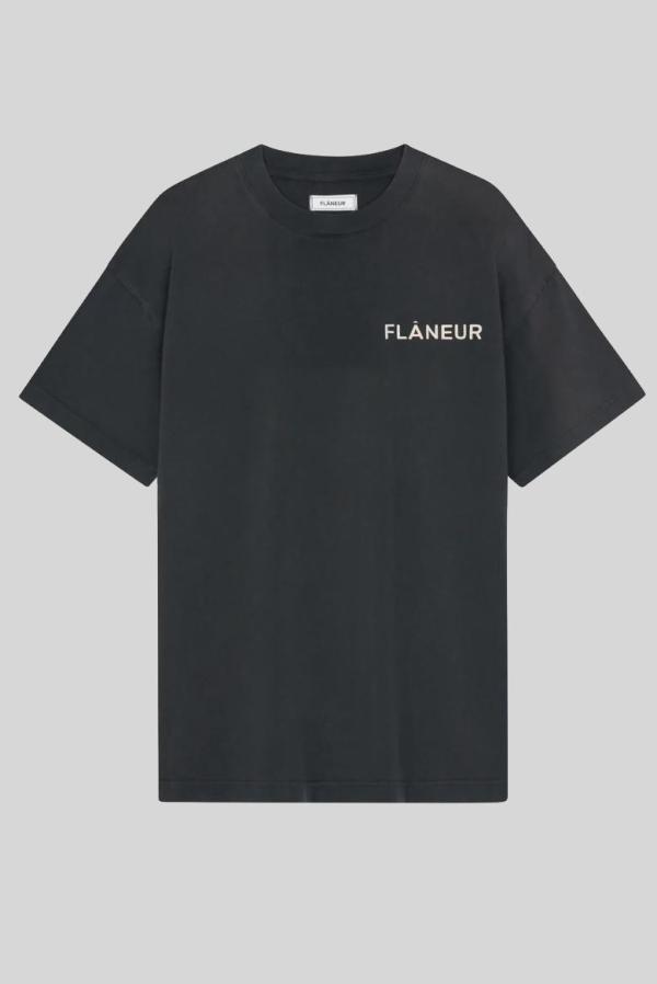 Het ‘Double Logo T-shirt Washed Black’ van FLANEUR heeft een merknaam back print en print van Flaneur op de borst. De gewassen katoen zorgt voor een grijze kleur van het loose fit (oversized) t-shirt.