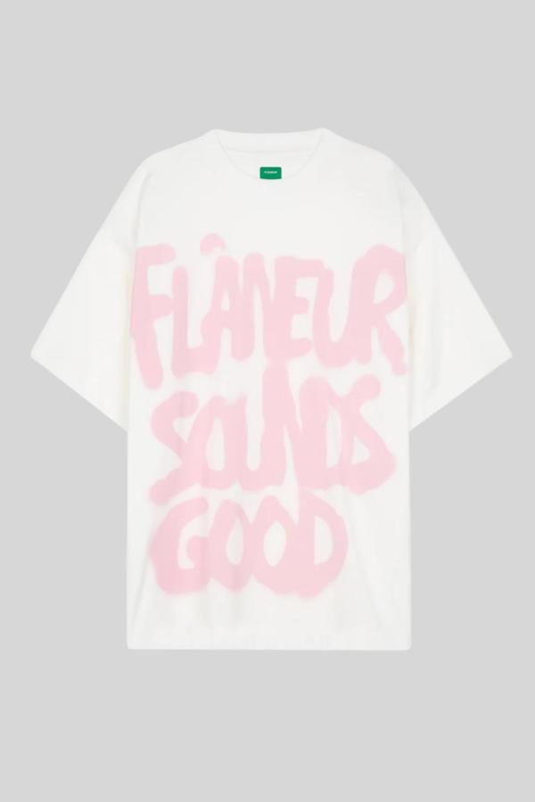 Het ‘Sounds Good Spray T-shirt’ van FLANEUR is een wit shirt van 100% katoen met een roze sprayprint op de voorkant. Het nieuwe super loose fit model geeft dit extra oversized ontwerp een moderne, expressieve uitstraling die moeiteloos opvalt!
