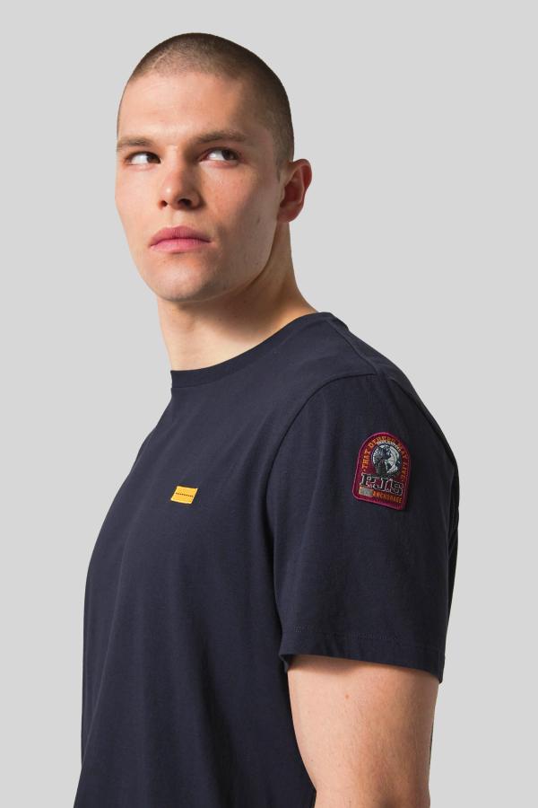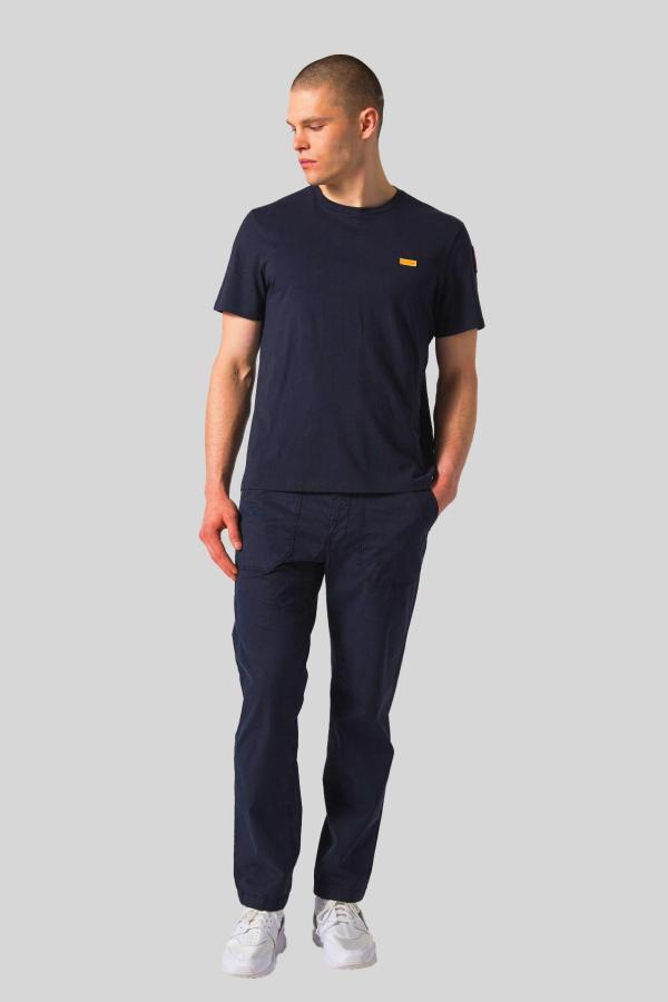 Het Parajumpers ‘Iconic Tee Man’ T-shirt in ‘Blue Navy’ is een donkerblauw shirt met een regular fit. Voorzien van een geel balkje op de borst en de kenmerkende PJS-badge op de linkermouw. Een tijdloos en veelzijdig item voor elke garderobe!