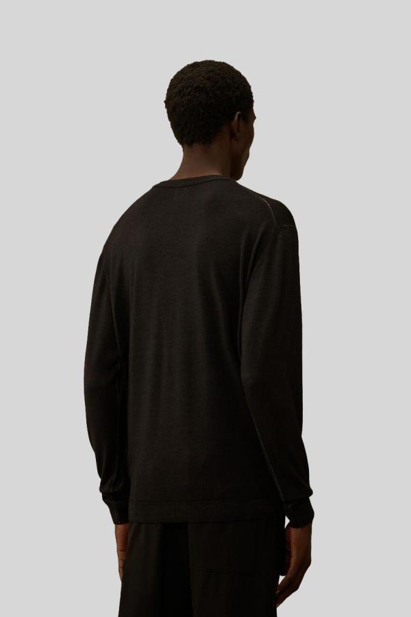 De Knitwear Crew Neck Fast Dyed Merino van C.P. Company in zwart is een regular fit trui van 100% merinowol. Dankzij het fast-dye proces ontstaat een subtiel melange-effect. Afgewerkt met ribboorden, contrasterende stiksels bij de armsgaten en een klein logo links onderaan de trui.