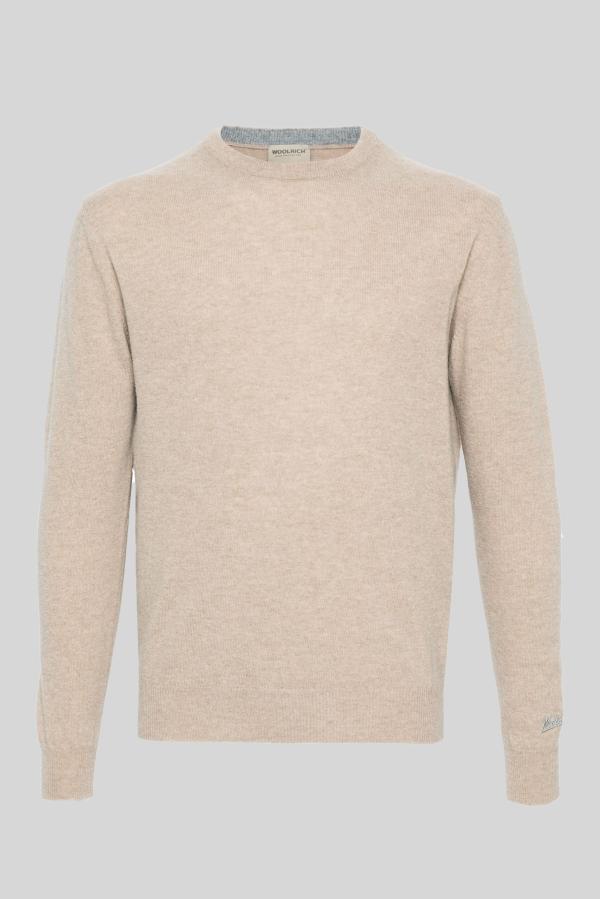 Trui Woolrich in de kleur beige in model ‘Lambswool Crewneck Feather Beige’. De trui met ronde hals is gemaakt van 100% lamswol.
