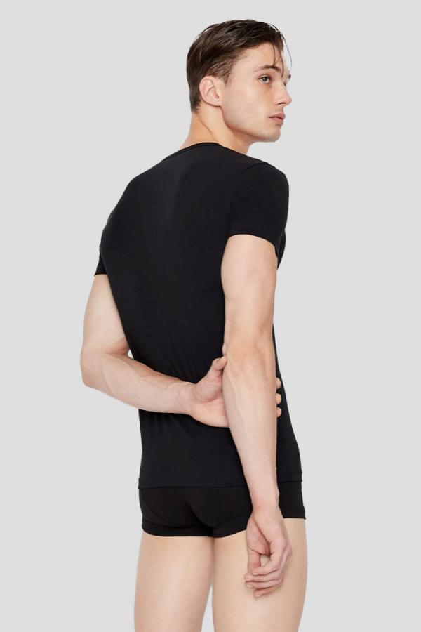 Two-pack Armani Exchange met t-shirts in de kleur zwart. De t-shirts van AX zijn per twee verpakt in een doosje. Elke box bestaat uit twee zwarte t-shirts. De t-shirts zijn gemaakt van katoen gecombineerd met elastan en sluiten strak aan. Ze zijn geschikt om bijvoorbeeld onder een trui of overhemd te dragen als ondershirt of […]