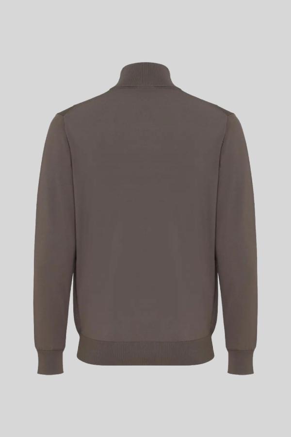 Bruin GENTI Cardigan Zip LS Knit, uitgevoerd in ademende cool-dry kwaliteit met viscose en nylon. Het comfortabele vest met zwarte ritssluiting biedt easy stretch voor optimaal draagcomfort. Het lijf en de mouwen hebben een verschillende structuur voor een subtiel contrast.