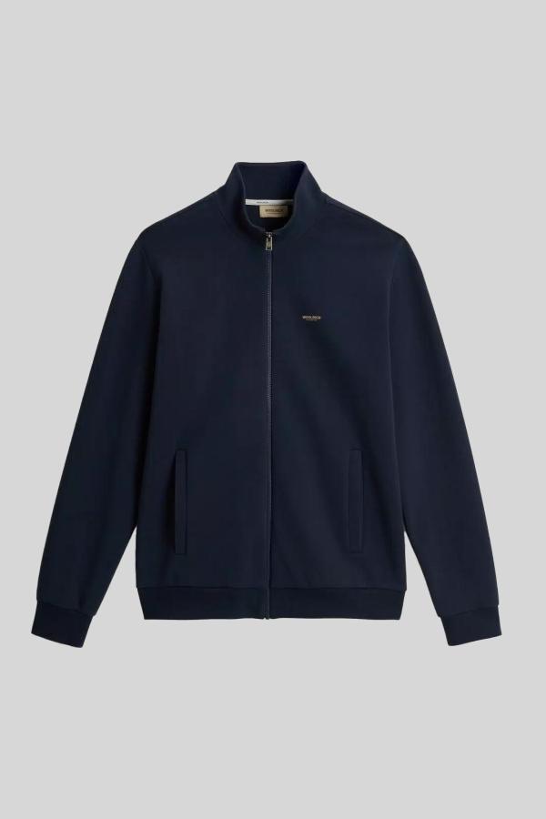 Woolrich vest ‘Logo Interlock Track’ in Melton Blue. Gemaakt van zachte interlock katoenmix met opstaande kraag, ritssluiting en paspelzakken. Geribde zoom en manchetten zorgen voor comfort. Het logo op de borst maakt dit minimalistische, sportieve design compleet!